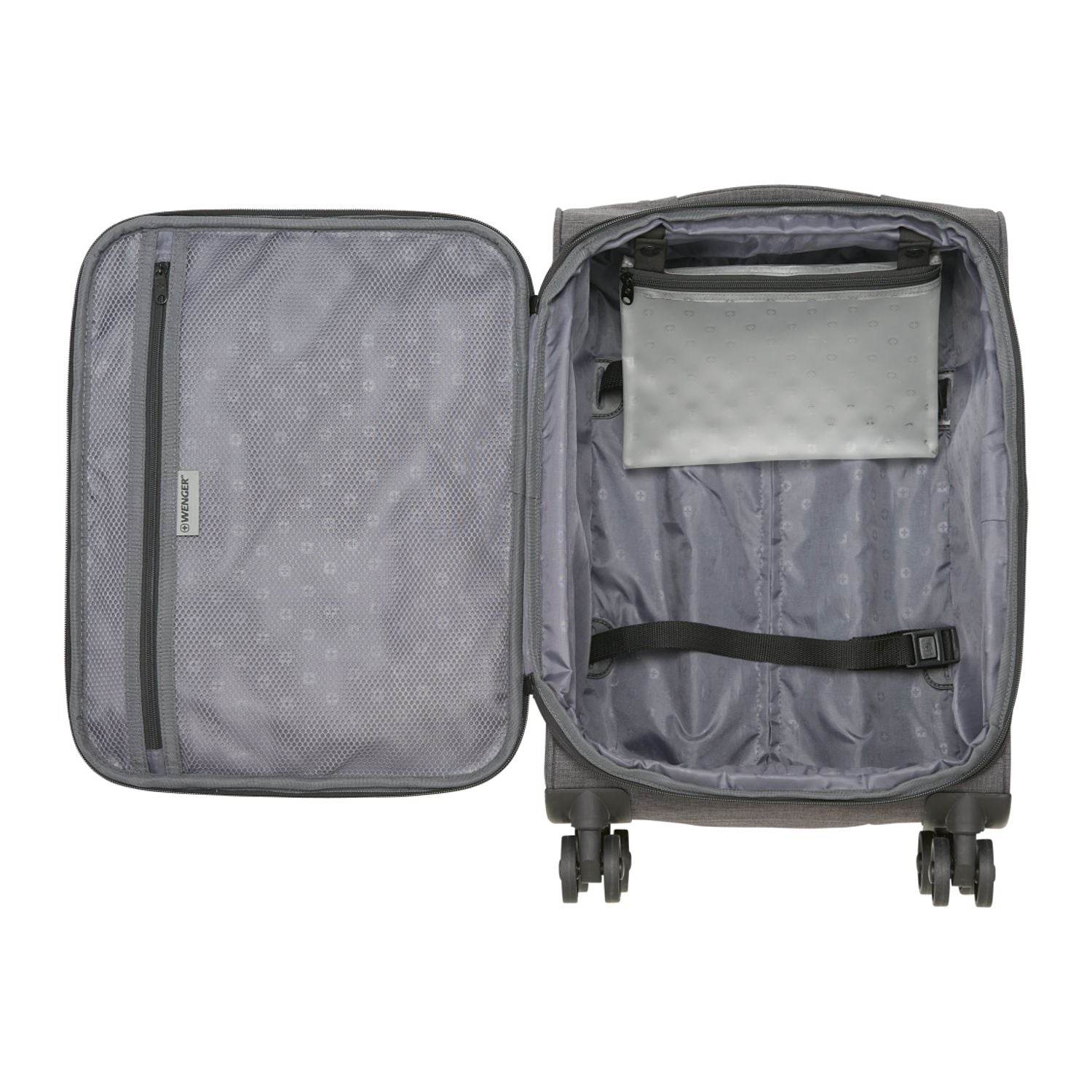 The Wenger RPET 21'' Graphite Carry-On is the perfect addition to your luggage set. It rolls on dual spinner wheels that improve maneuverability, while its adjustable telescopic push/pull handle matches any height, making the luggage a good fit for people of all sizes. The interior features a wet pouch and plenty of storage space, along with compression straps and a zippered front panel pocket. Fits most airlines carry on guidelines.